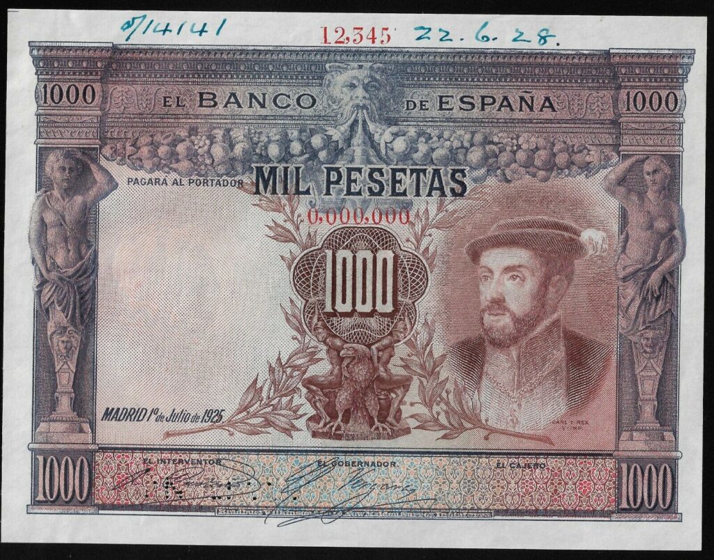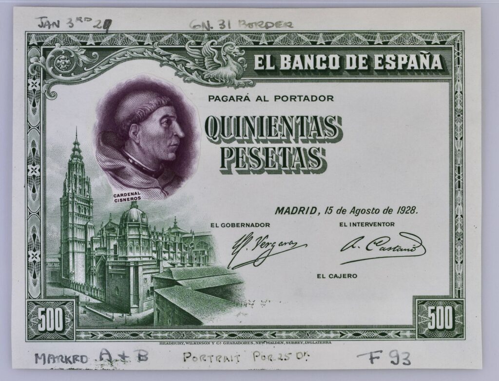Billete con anotaciones de control de tirada.